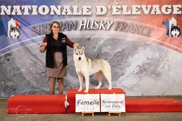 Grande femelle très athlétique avec d'excellentes proportions Excellente tête Très bonne sortie d'encolure Très bonnes angulations avant Excellentes angulations arrière La poitrine bien descendue Excellente allure
